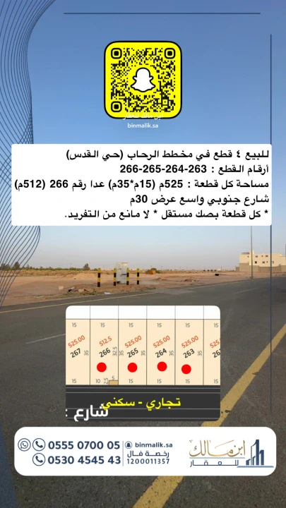 طلب اتصال | أراضي للبيع في مخطط الرحاب - أرض للبيع - حي القدس | ابن مالك للعقار