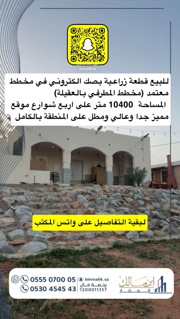 للبيع قطعة زراعية بصك الكتروني في مخطط معتمد (مخطط المطرفي بالعقيلة)